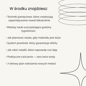 Przedstawiamy ebook "Ucz się szybciej, Zapamiętuj więcej" - doskonałe wsparcie dla studentów pragnących opanować szybkie i skuteczne metody nauki. Ta praktyczna publikacja pomoże Ci poznać nowe techniki uczenia się, dzięki którym osiągniesz nawet 2 razy lepsze wyniki w nauce. Zawiera również przydatne checklisty które dołączamy w gratisie po każdym z omawianych tematów, ułatwią Ci one organizację i systematyzację wiedzy. Odkryj skuteczne strategie nauki i osiągnij sukces akademicki z naszym ebookiem.